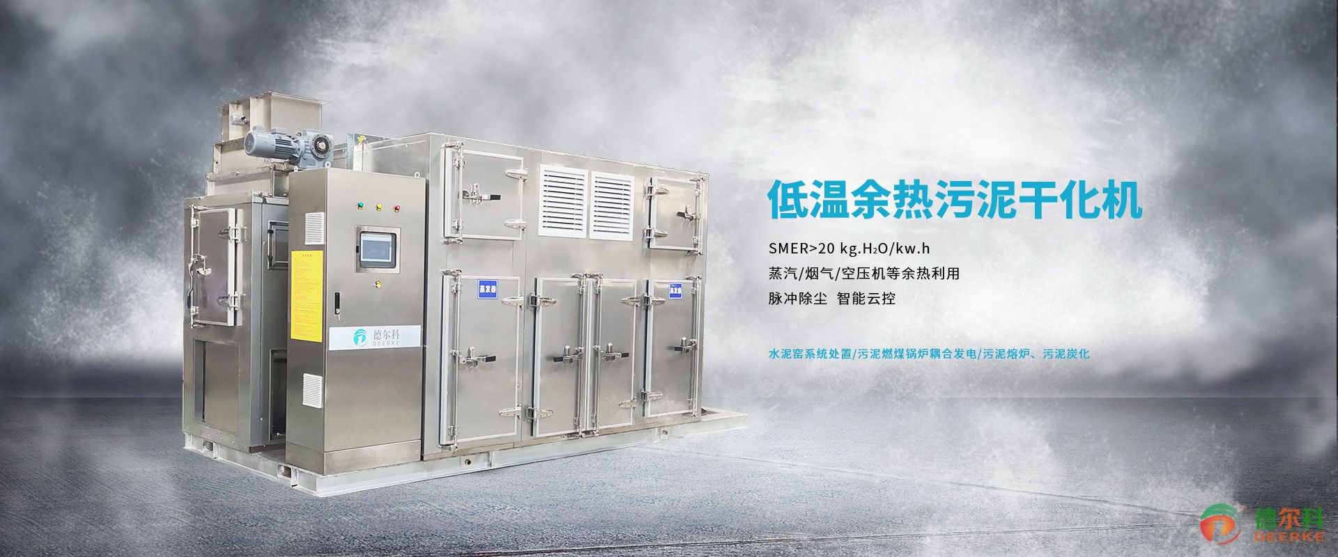 德爾科自主創新研發設計制造的低溫余熱污泥干化機,采用新型余熱回收設計技術,充分利用煙氣、飽和蒸汽冷凝水、空壓機余熱、厭氧消化(燃氣制熱水)工業廢熱.污泥裂解氣化燃燒制熱水等工況,在低溫密閉的環境中對污泥進行脫水干化。既提高工業廢熱的利用率,也降低污泥